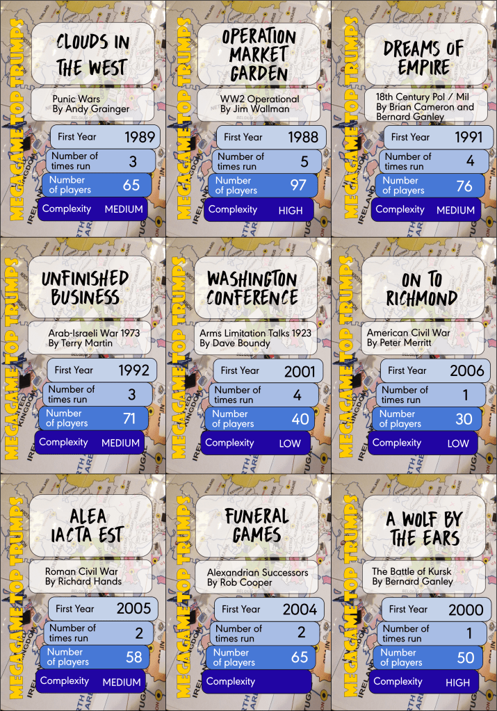 Access to this library, in conjunction with a group of enthusiastic fellow gamers, enabled me to experiment with ideas from the USA in ways not available to mainstream gamers then. I was particularly lucky in having a group of wargamers that formed the core of Chestnut Lodge Wargames Group to try out these ideas and approaches. And although at that time megagames had not yet become a thing – much of the thinking about multi-player, wargames or political / military games had its inception for myself and my circle of friends around that time.