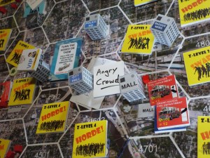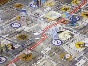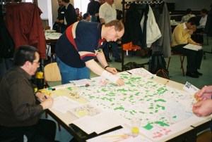 A megagame is like a LARP (very like a LARP) in the same way it is like a role playing game above. In megagames there is also the opportunity, that some take, to dress up for the part. It is with some reluctance that I generalise about LARPs but the main difference, it seems to me is that LARPs require dressing up and total immersion in a way that megagames do not and that the LARP follows a more pre-determined narrative structure, often with a clear ending or denouement. The creation of clear ending / grand finale aspect is quite literally impossible for the megagame – which is all about emerging gameplay – in a megagame the ending that emerges might be a single dramatic and memorable event, or it might be a collection of small events that contribute to the overall narrative.